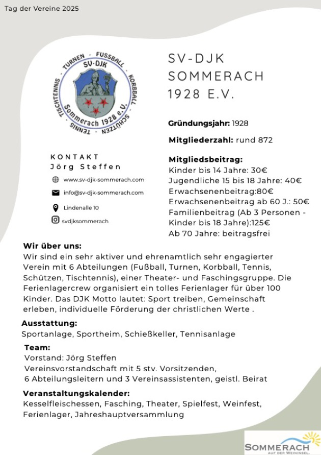 sv-djk-sommerach.com ist die offizielle Website des Vereins und bietet aktuelle Nachrichten und Informationen rund um den Verein.